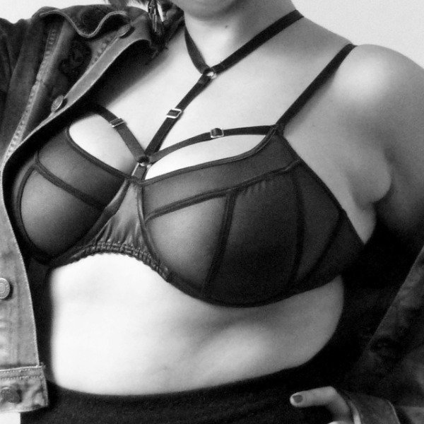 ♥ Brasier con arco y choker cruzado en la espalda, de tricot y tul LYCRA®, con elásticos satinados, hecho a mano. Puede usarse tanto en la intimidad como en sociedad, como prenda interior o exterior, invisible o expuesta, para hombres o mujeres o elles.